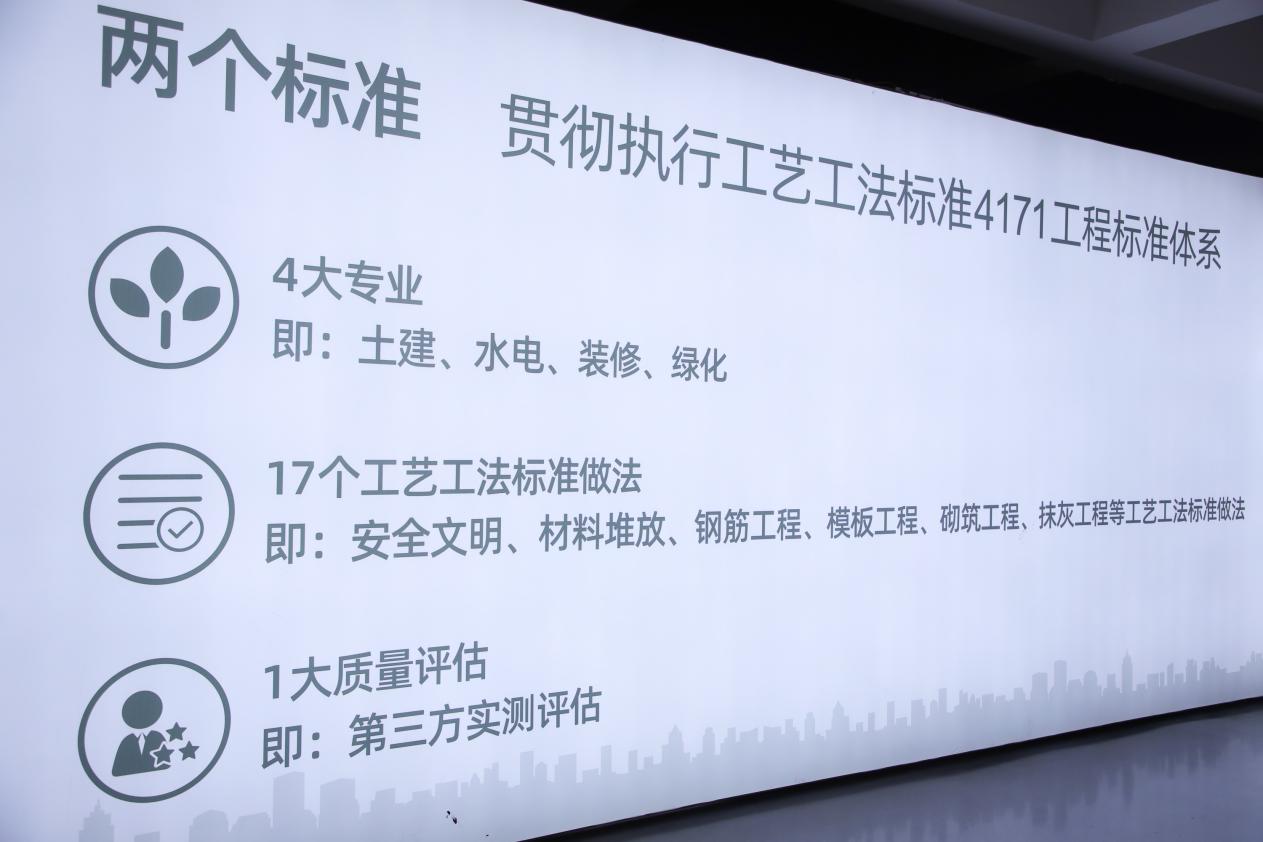 俊發(fā)建設(shè)以俊發(fā)工藝工法標(biāo)準(zhǔn)4171標(biāo)準(zhǔn)工程體系(即“土建、水電、裝修、綠化”4大專業(yè)、“安全文明、鋼筋工程、模板工程……”等17項(xiàng)工藝工法標(biāo)準(zhǔn)施工流程、“第三方實(shí)測(cè)評(píng)估”1大質(zhì)量評(píng)估)為基點(diǎn),不斷打造并完善全流程、全維度的質(zhì)量管控體系,完善工程管理技術(shù)和管理標(biāo)準(zhǔn),實(shí)現(xiàn)工程質(zhì)量的均好發(fā)展。